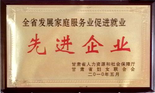 2010年5月公司被甘肅省人力資源和社會保障廳、甘肅省婦女聯(lián)合會評為“全省發(fā)展家庭服務(wù)業(yè)促進(jìn)就業(yè)先進(jìn)企業(yè)”;