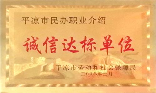 2008年公司職業(yè)介紹所被平?jīng)鍪袆趧?dòng)和社會保障局評為“誠信達(dá)標(biāo)單位”;
